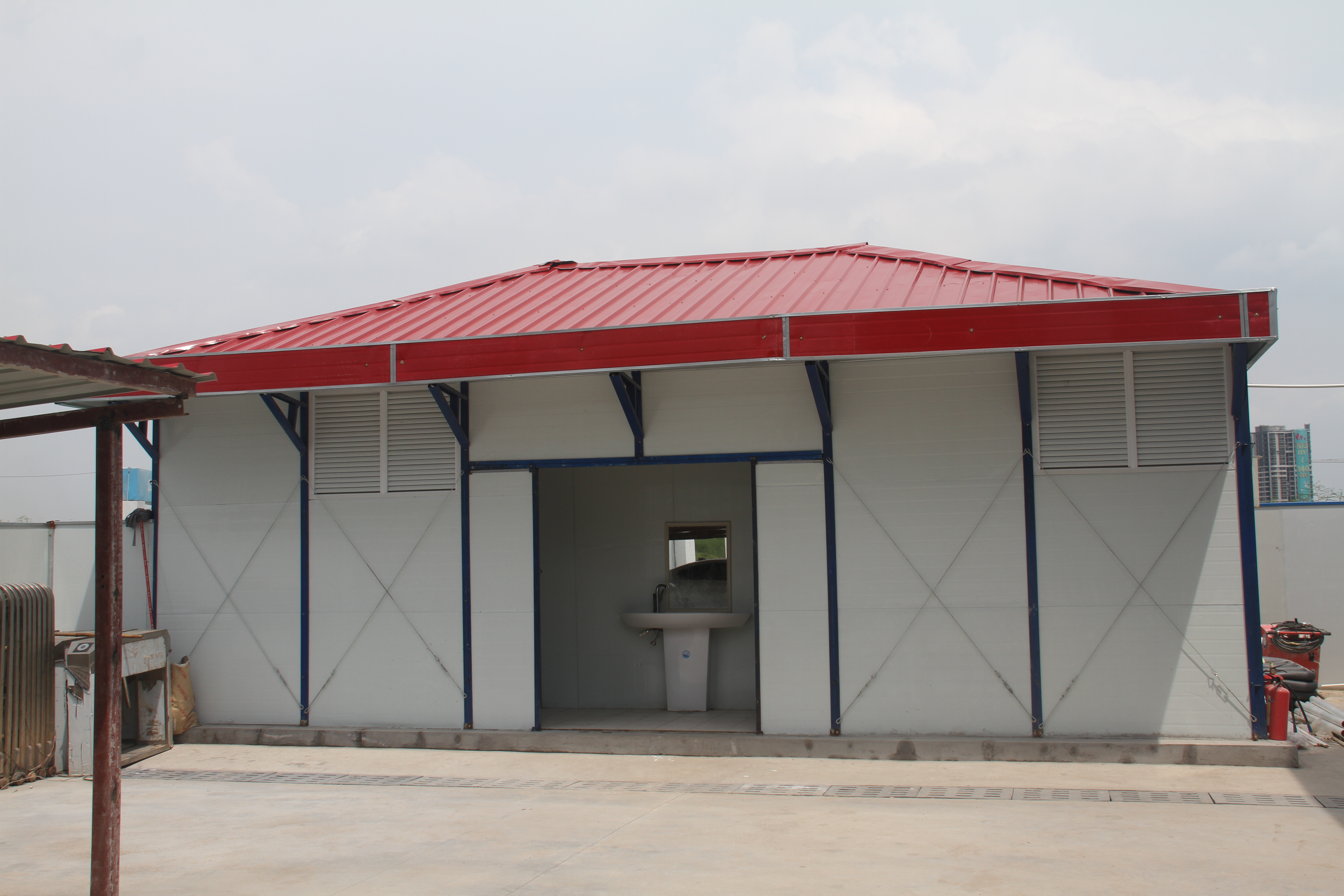 K式平顶活动房是一款环保经济型临建产品,该产品以轻钢结构为骨架,以彩钢夹芯板为围护材料,主要构件采用螺栓连接,